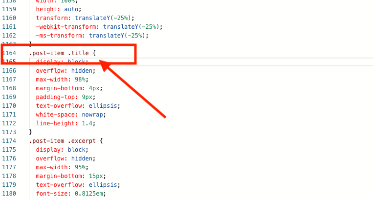 CSS 직접 수정하기에서 컨트롤+F로 아래와 같이 "post-item .title"를 검색해줍니다