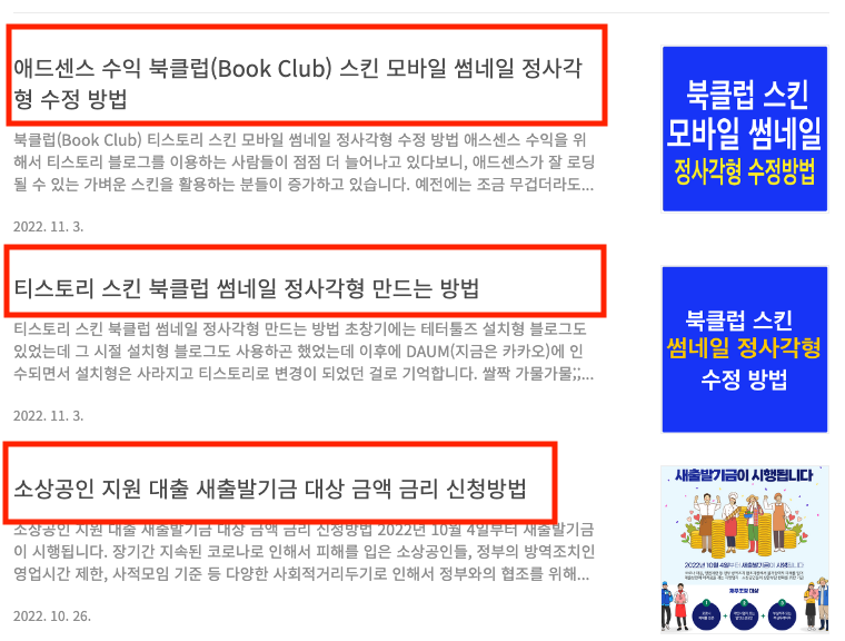2022.11.03 - [분류 전체보기] - 애드센스 수익 북클럽(Book Club) 스킨 모바일 썸네일 정사각형 수정 방법